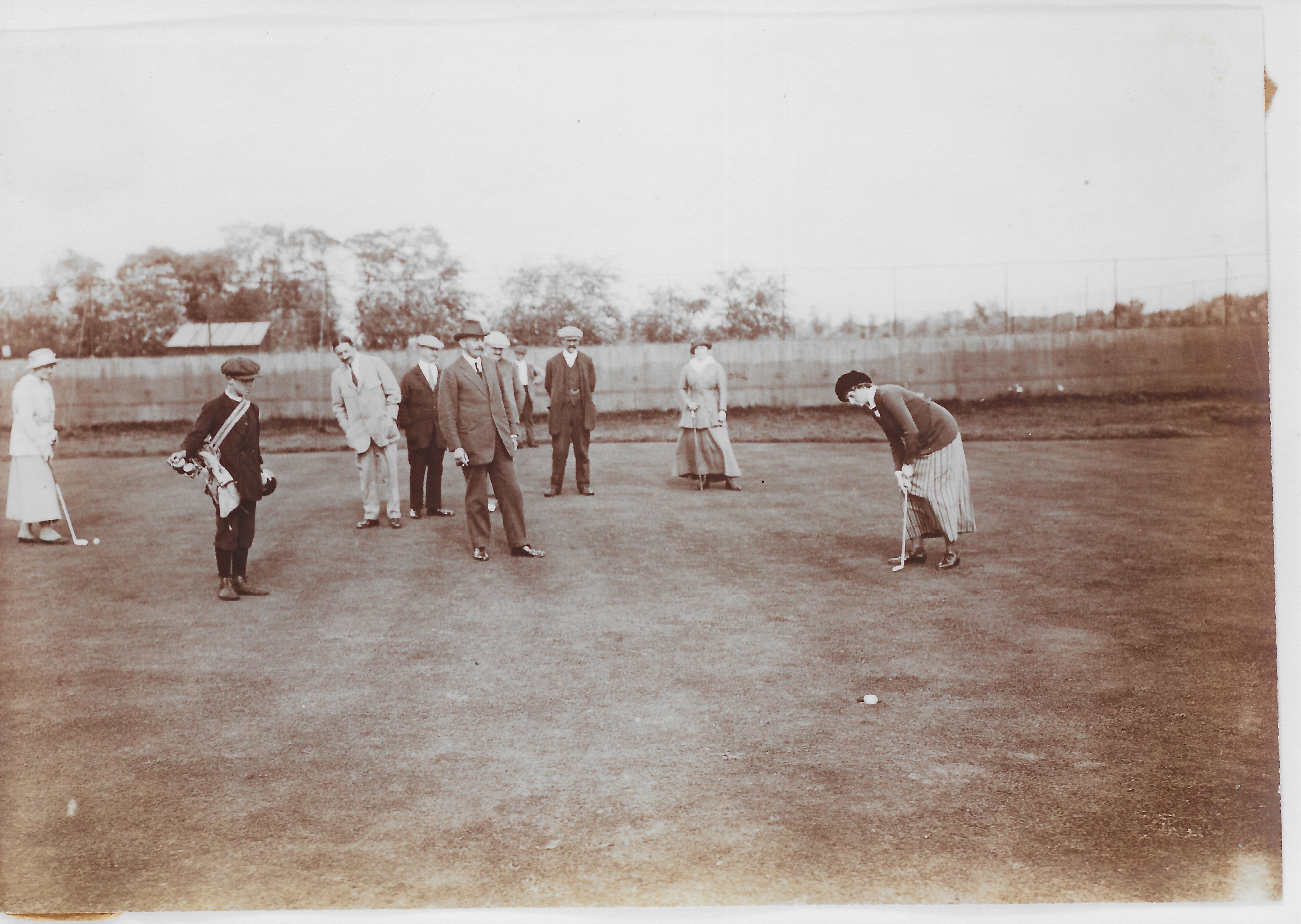 Dameskampioenschap, mevr. Calkoen van Limmen putt, oa. A.J. Ife, 3 september - 1915