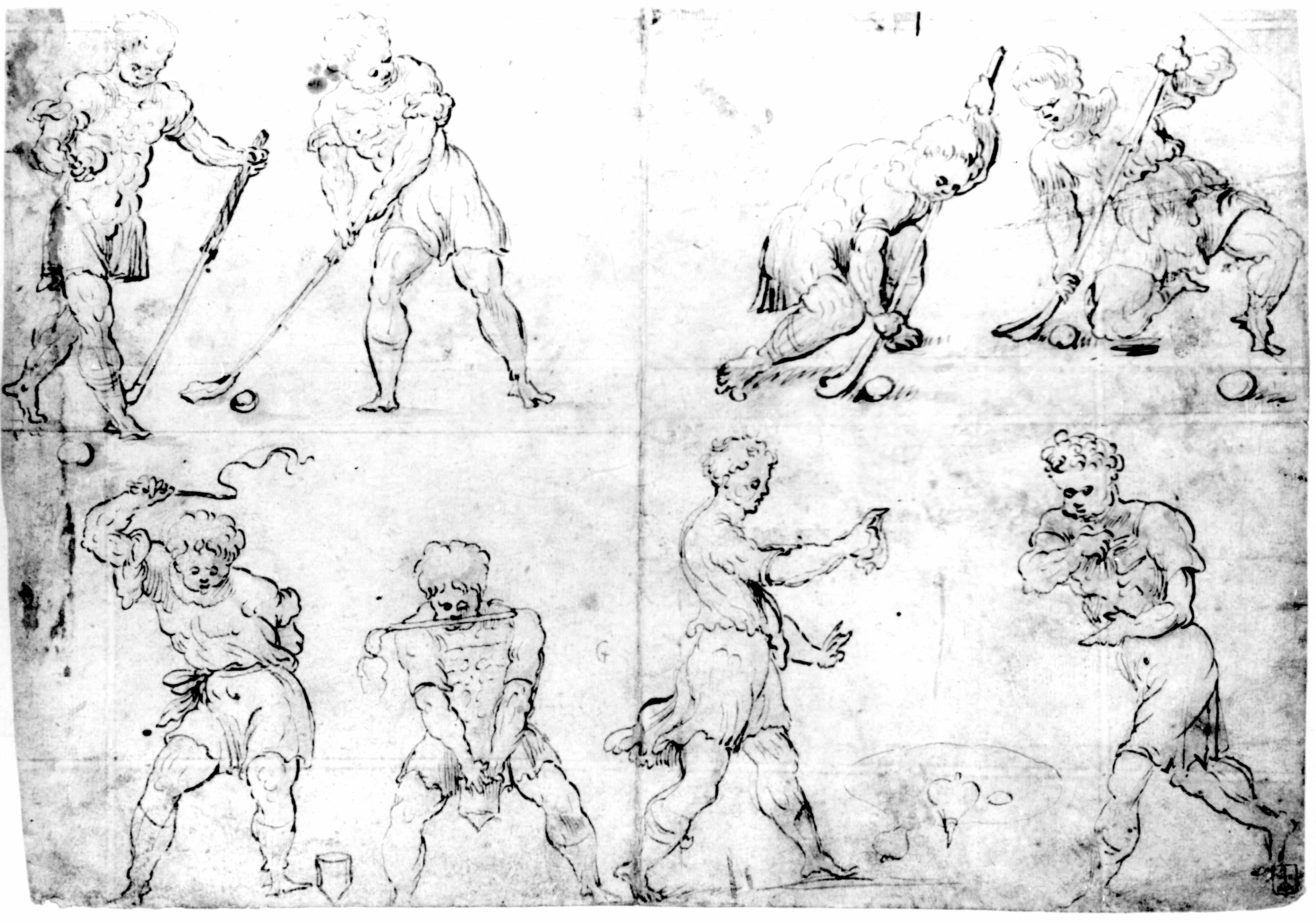 Pentekening van colf spelende kinderen door Lambert Lombard (1505 - 1566).
