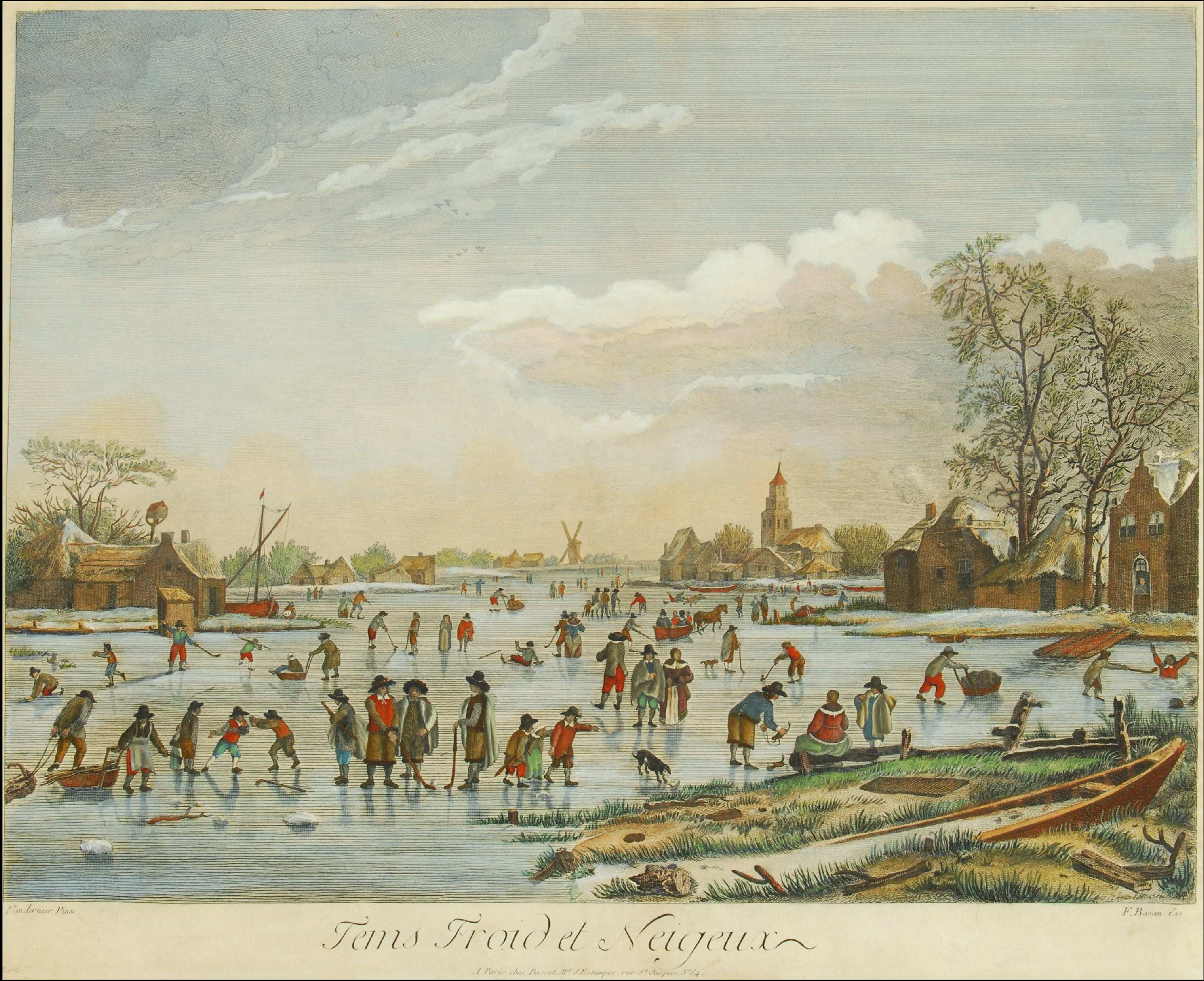 Temps Froid et Neigeux, uitgegeven eind 18e eeuw door Pierre-François Basan (1723 - 1797), naar een voorbeeld van Aert van der Neer (1604 - 1677). Later met de hand gekleurd.