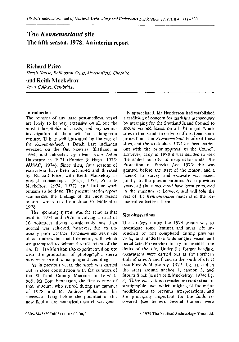 In de bijlage een kort artikel van de International Journal for Nautical Archeology uit 1979 (png, 51.7 KB)